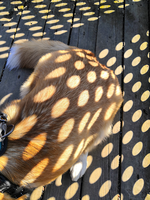 Käytiin tänään vähän tuulettamassa mun aivojani kouluhommista, ja köpöteltiin rauhassa keskustaa kohti. Kuljettiin mahdollisimman paljon pehmeää maata pitkin, ja pidettiin taukoja. Jutustelin yhden naisenkin kanssa, joka kyseli corgeista ja kertoi omasta shibastaan, joka hänellä oli aikoinaan.